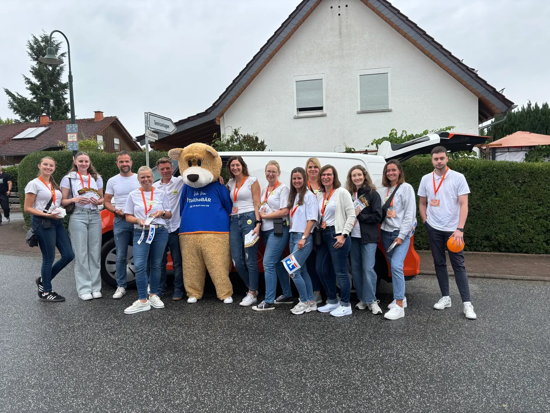Neben unseren eigenen Veranstaltungen waren wir auch aktiv dabei, die Region zu feiern: Zum Beispiel beim Kirschenmarkt in Gladenbach zogen wir mit unserem Toni TeilhaBÄRen im Festzug mit, und beim Handball der HSG Eibelshausen feuerten wir unsere Kollegen Niklas Pfeifer und Christina Biberger kräftig an.